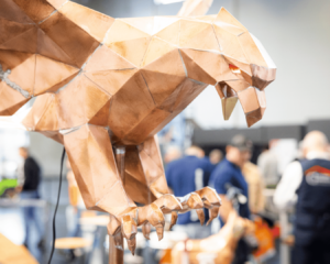 Metall-Origami am Workspace Klempnerhandwerk der Spengler-Meisterschule Würzburg. Ein Adler aus Kupferblech kreiert von Torsten Thielmann.