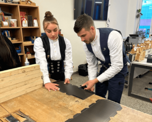 Ein besonderes Highlight, das auch bei der diesjährigen Mitgliederversammlung des iib vorgestellt wurde, ist die Aktion “Handwerk on Tour”, initiiert durch die Firma Prefa. Marvin Bürger (Vorstandsmitglied des iib) und Fabienne Ellermeier besuchen Schulen und ermöglichen Jugendlichen dort Handwerk selbst zu erleben. Die Schülerinnen entdecken so, wie es sich anfühlt etwas mit den eigenen Händen zu erschaffen. Und ganz nebenbei, wie viel Spaß handwerkliches Arbeiten machen kann.